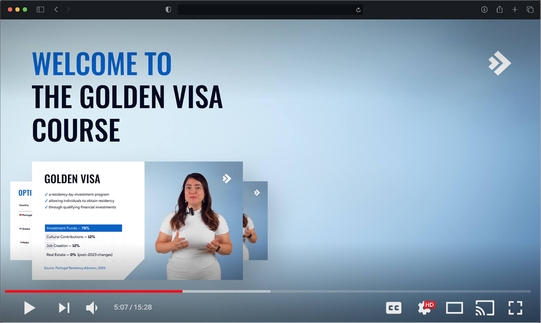 In just 10 short lawyer-prepared videos, we’ve distilled and compared the best Golden Visa options so you can get only verified insights without endless reading